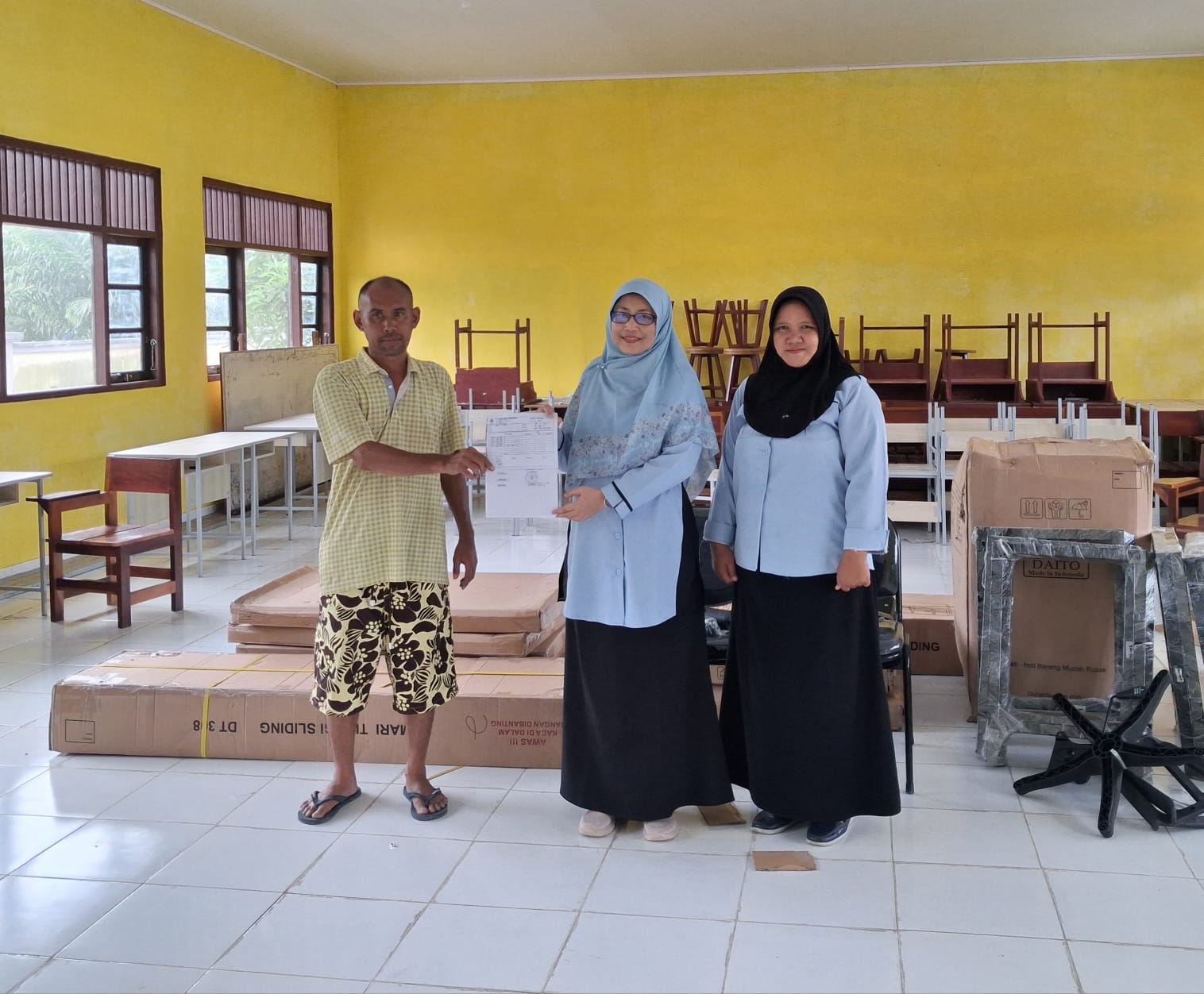 “Assalamualaikum Wr. Wb. Saya mengucapkan banyak terima kasih kepada Bapak Gubernur Kalteng, Bapak Kepala Dinas Pendidikan Prov. Kalteng, serta Bapak Kabid SMK dan Ibu Kasi Sarpras SMK yang telah memberikan bantuan berupa meubelair meja kursi untuk siswa kami. Kebetulan sekali meja kursi siswa kami sudah banyak rusak,” ujar Hestina, Senin (11/11/2025).